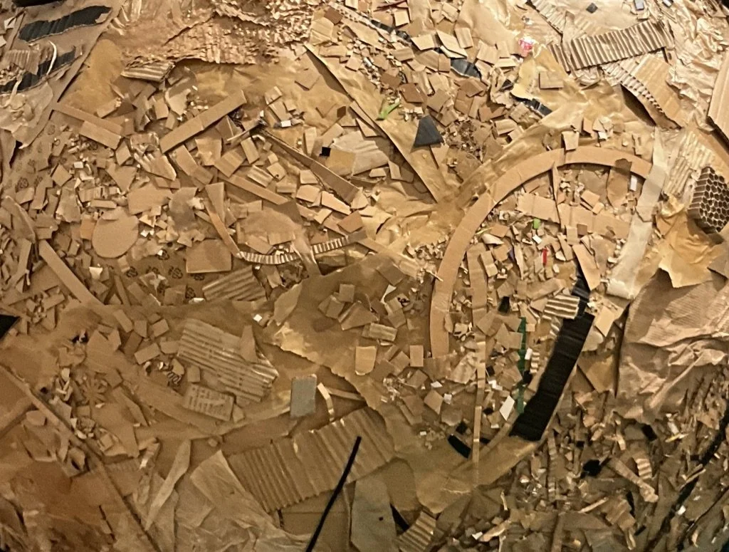 Did you know small pieces in paper recycling don’t always get recycled? It all depends on the sorting methods used in your area, it felt good to be able to mitigate this possibility for this exhibit.