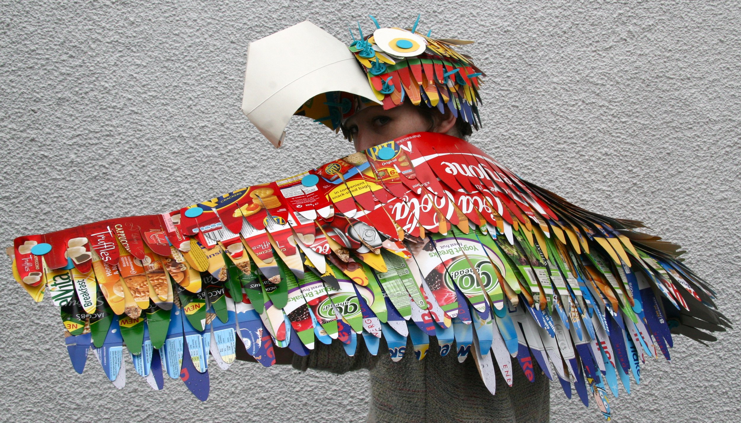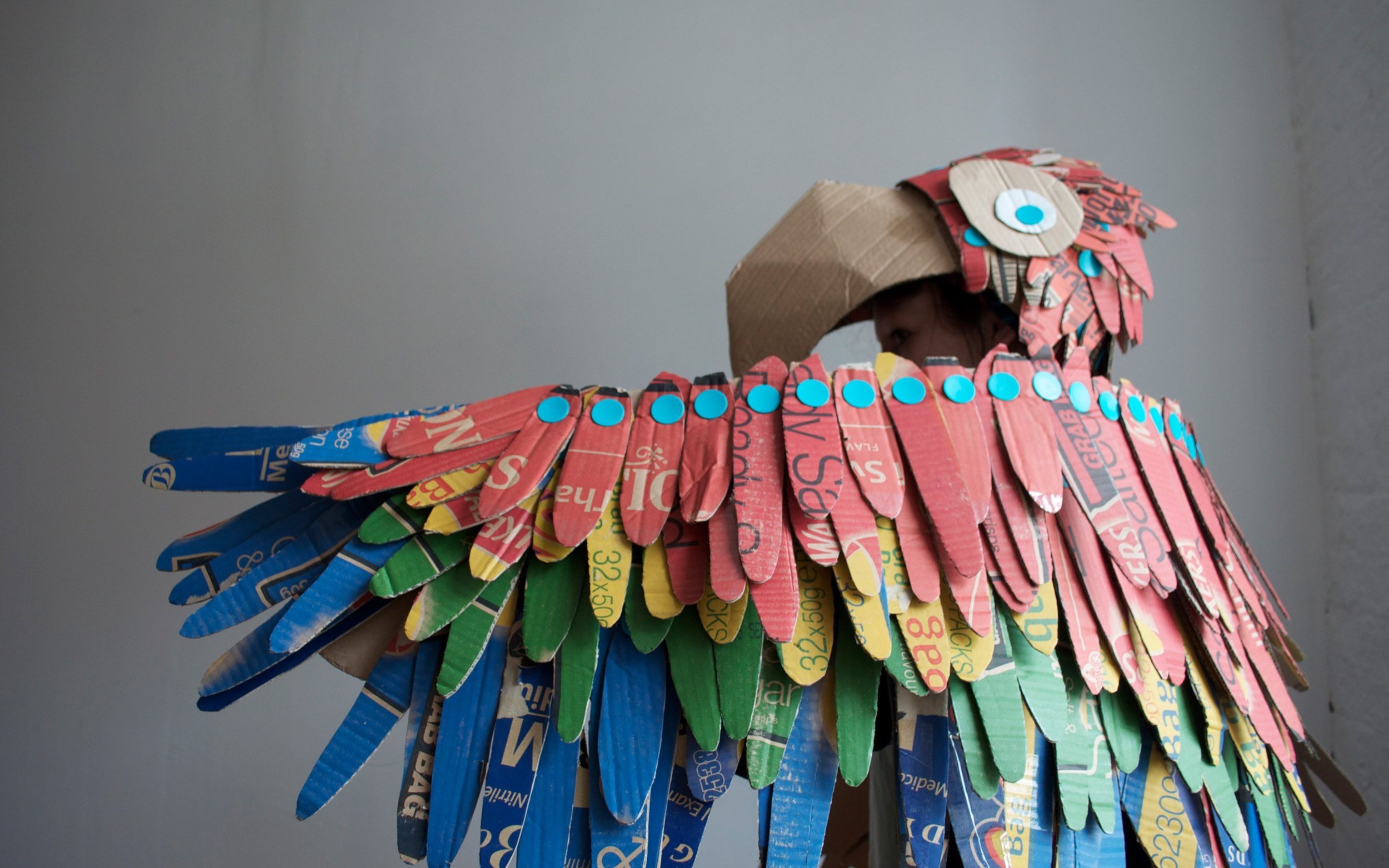 The costume was made exclusively from the different colour crisp boxes kindly donated by the cornershop a few meters from my home.