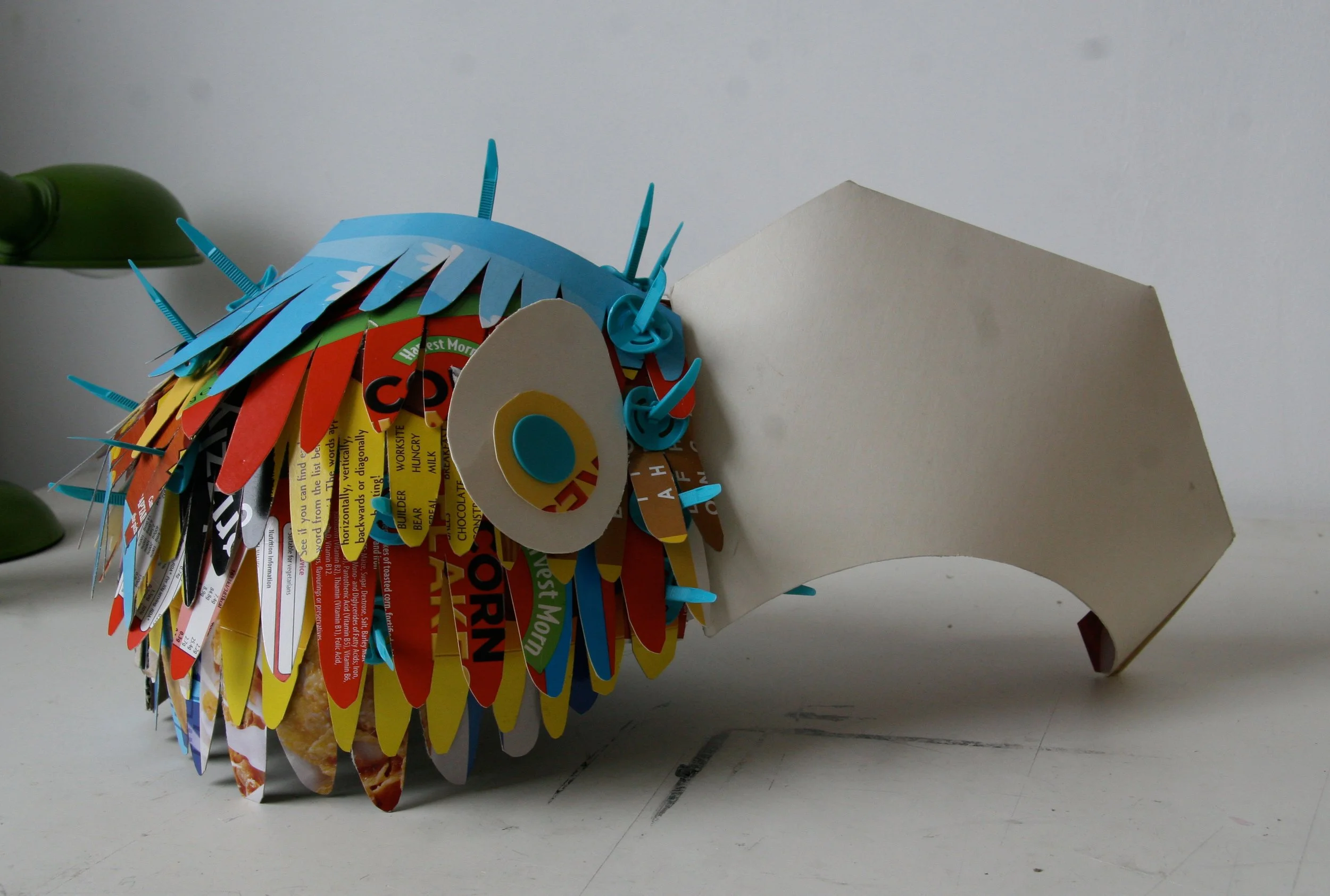 Wearable hat and wings made for a [re]design project using Makedo, an easy-to-use, open-ended construction toy system.