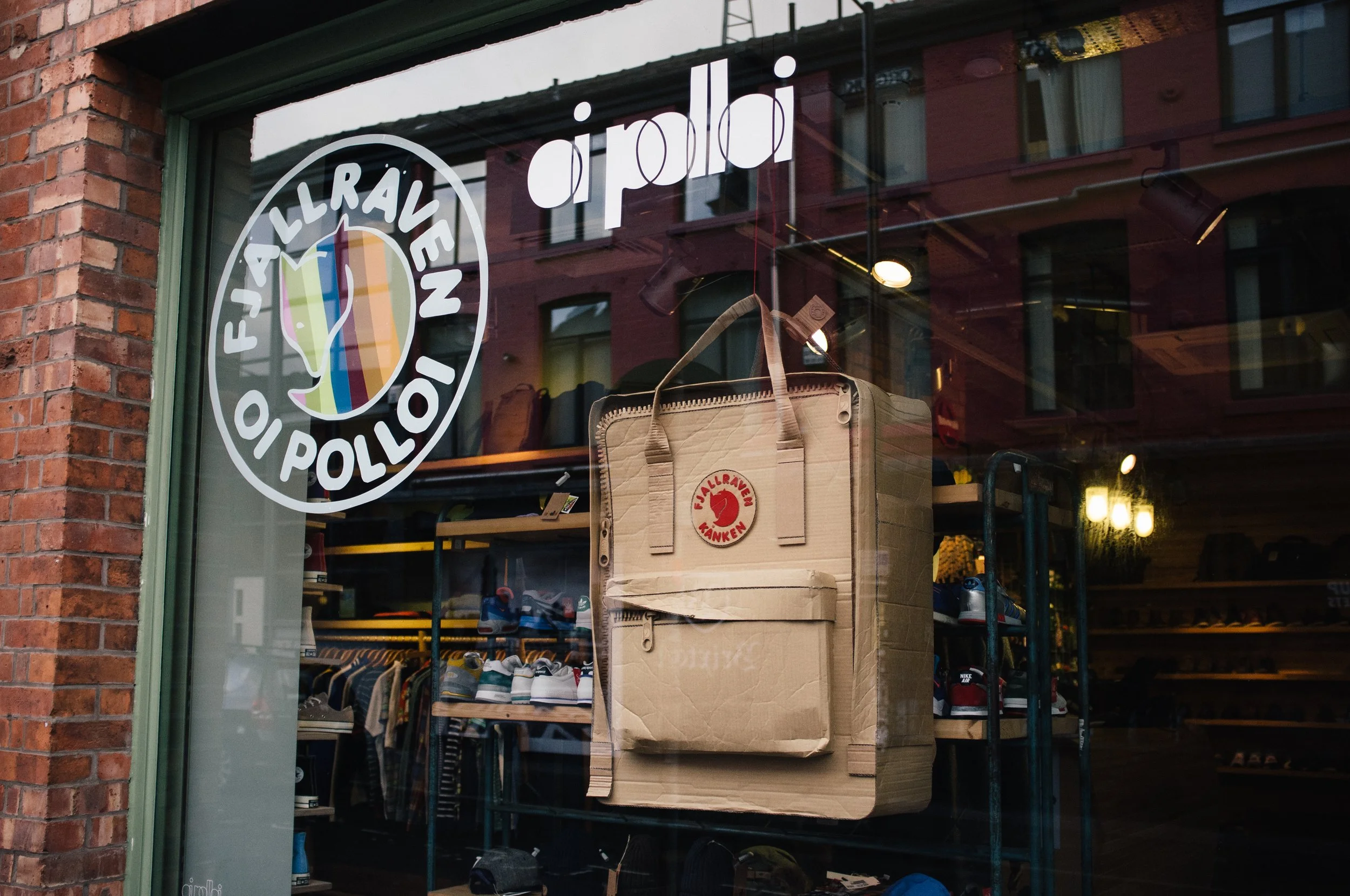 Commissioned by independent menswear retailer Oi Polloi, this scale replica of Fjällräven's classic Kånken bag was made to grace their Northern Quarter shop window in Manchester, UK.
