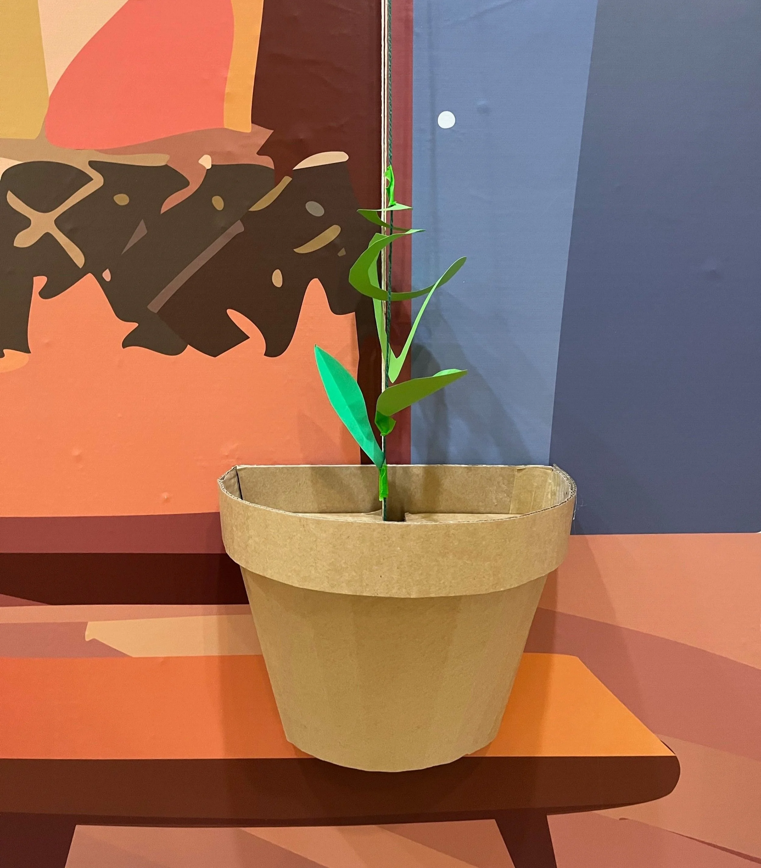 Staff could raise the beanpoles when needed to allow more space to add leaves at the base and so grow the beanstalk. The activity allowed return visitors to view the 2 beanstalks growing throughout the installation.